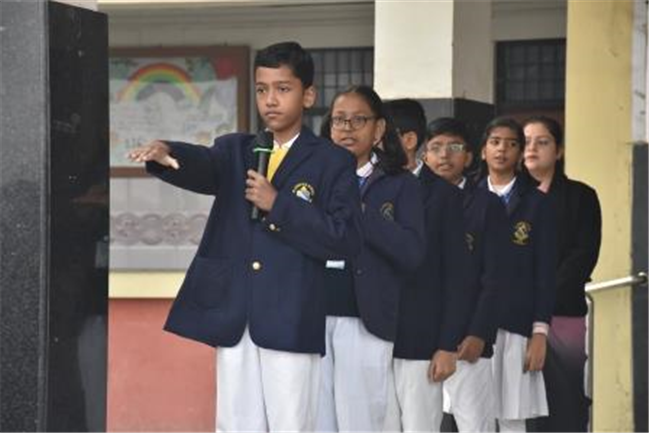 The school prayer was led by Aman Yadav and Shreeyanshi Pandey, followed by the