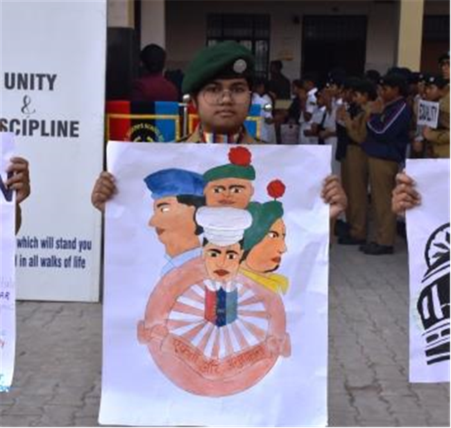 speech, the Principal, Rev. Fr. Melwin Wilson D’Souza, emphasized the NCC motto