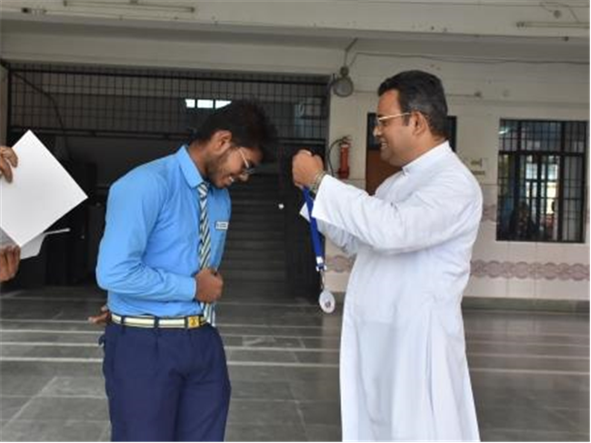 Principal Rev. Fr. Melwin Wilson D’Souza and the teaching staff. The winners of