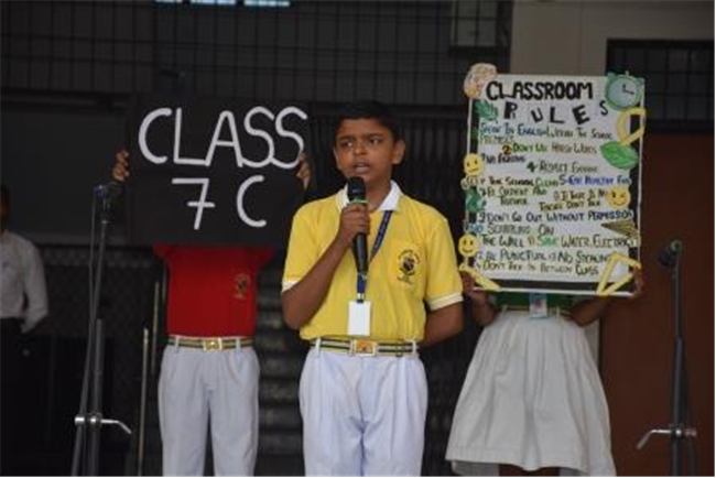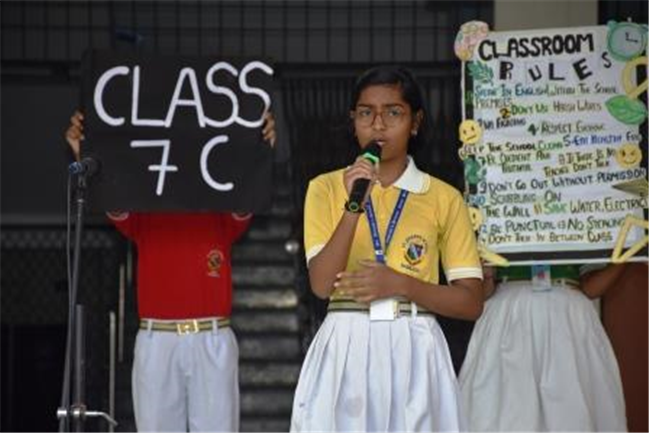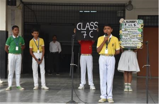 conducted by Class VII-C on the topic "Deeds Not Words." Sanskriti