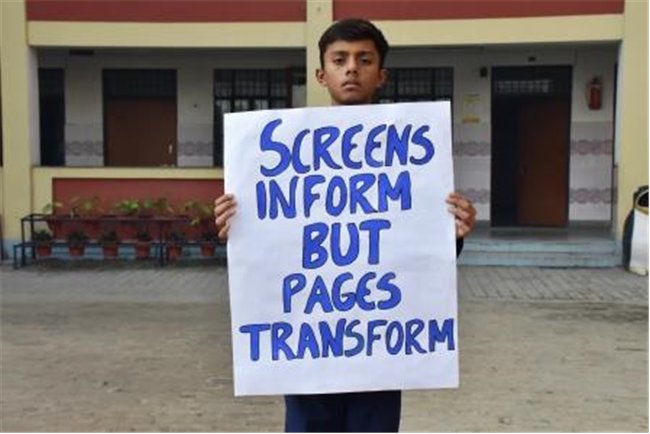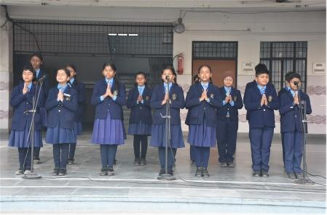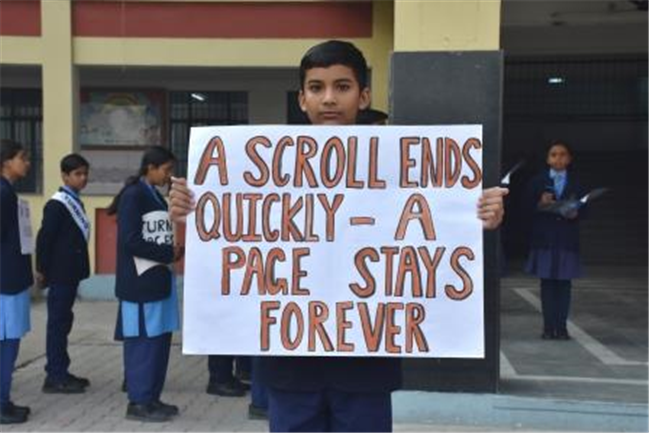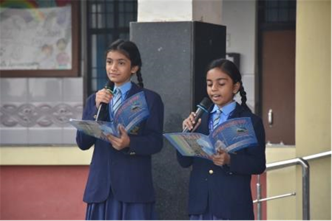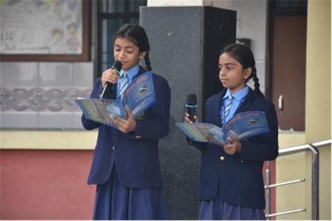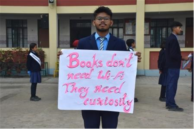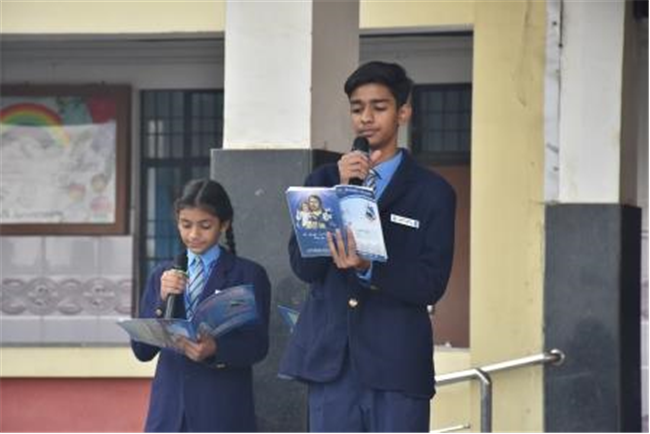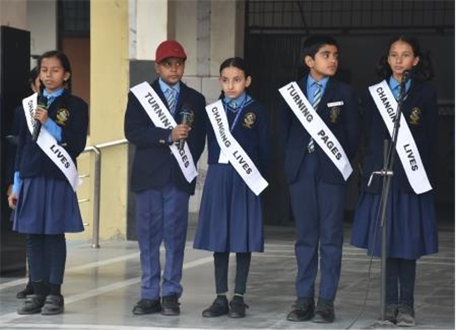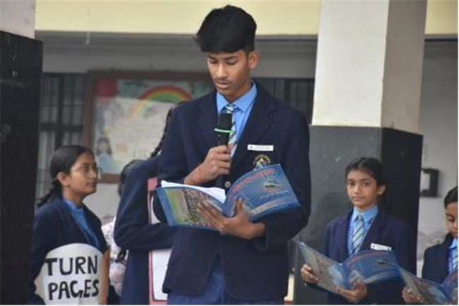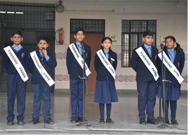 The Literary Association, on Monday, December 1, 2025, conducted an inspiring assembly on the theme "Turning Pages, Changing Lives." It commenced with a prayer, pledge, and introduction, followed by a Group Elocution highlighting the magic of books. A short skit was also presented, featuring characters who embodied themselves as a mobile (Anushka Singh, Class 11) and inspirational books such as Diary of a Young Girl (Anushka Dwivedi, Class 11) and Wings of Fire (Yasba, Class 11). The skit depicted how books offer knowledge, imagination, and emotional growth, while excessive screen scrolling leads to distraction and stress.